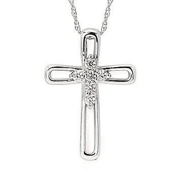 .08 Ctw. Diamond Cross Pendant In 14K Gold With 18" Chain